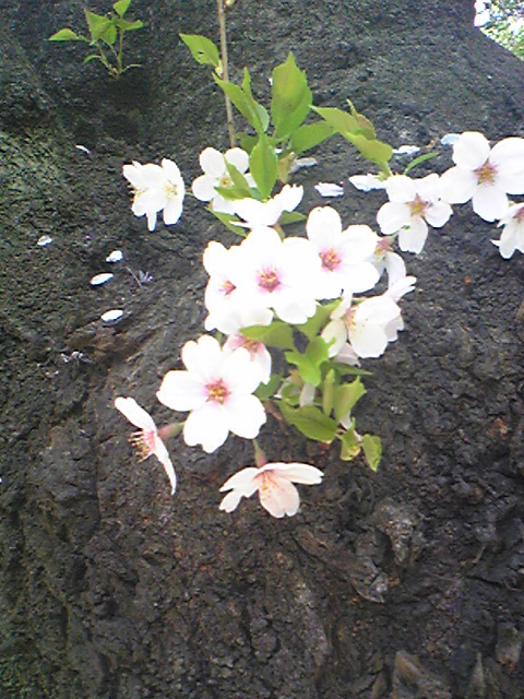 木の幹に近い場所で咲いていたので携帯で撮ってみました。